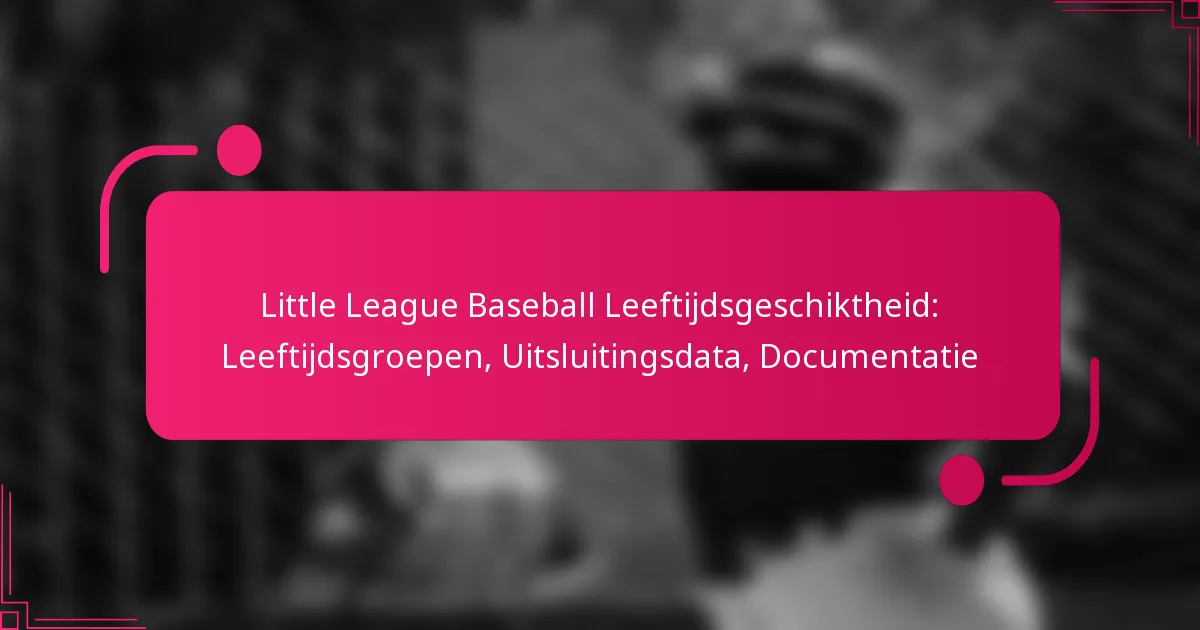 Little League Baseball stelt leeftijdsgroepen vast om eerlijk spel en vaardigheidsontwikkeling onder jonge atleten te bevorderen. Geschiktheid wordt bepaald door specifieke cutoffdata op basis van de geboortedata van spelers, die invloed hebben op registratie en teamindelingen. Om deel te nemen, moeten spelers documentatie indienen, zoals een geboorteakte, om hun leeftijd te verifiëren en een juiste indeling in de divisie te waarborgen.